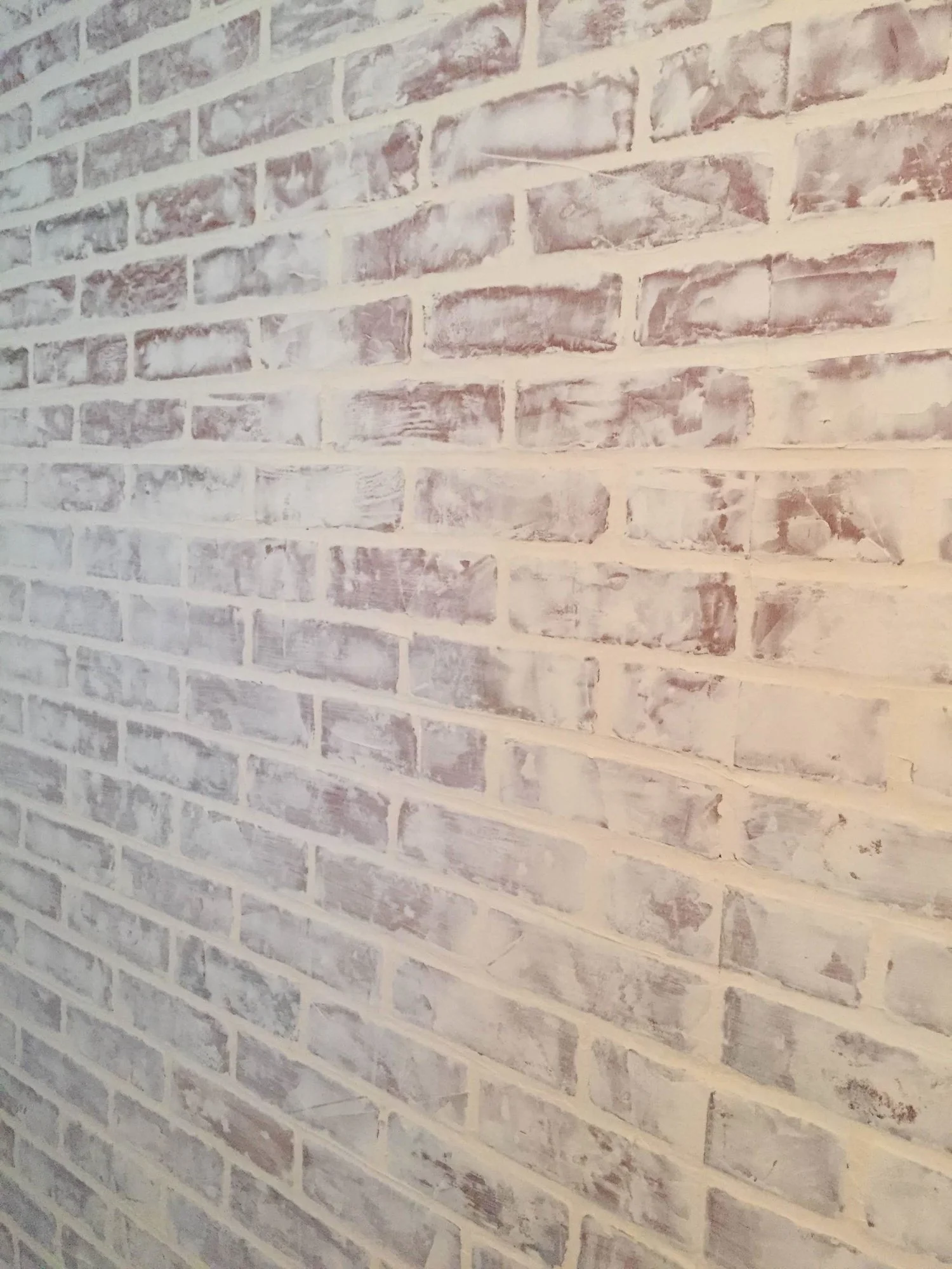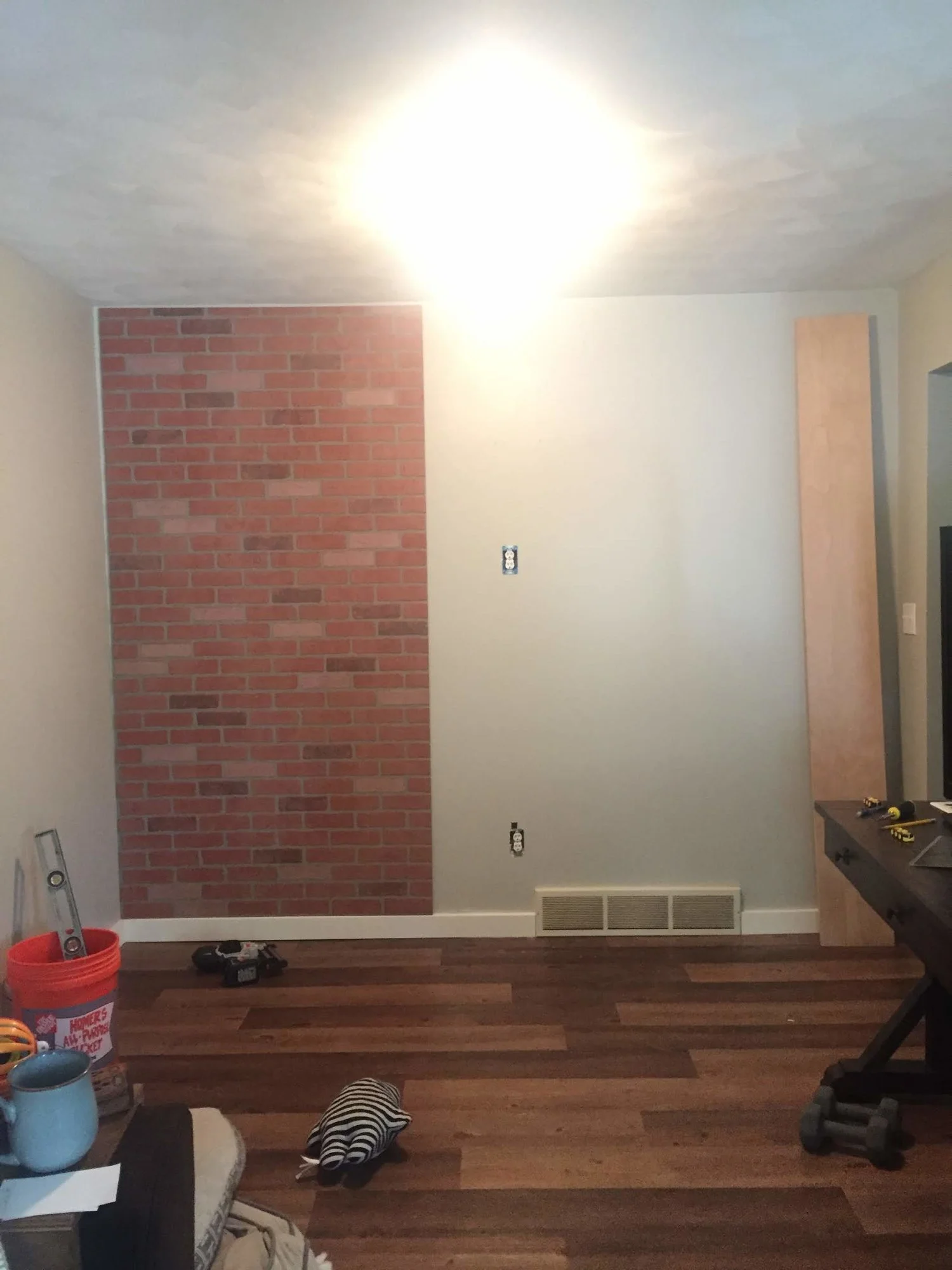 Because I didn’t want to spend that, and I wanted the option to be able to remove whatever we put up, I decided faux brick was the way to go.